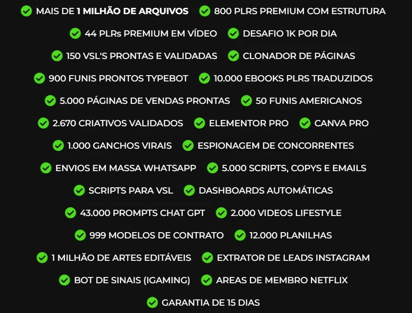 Acesso completo a mais de 500 cursos premium que os gurus vendem por fortunas, incluindo: